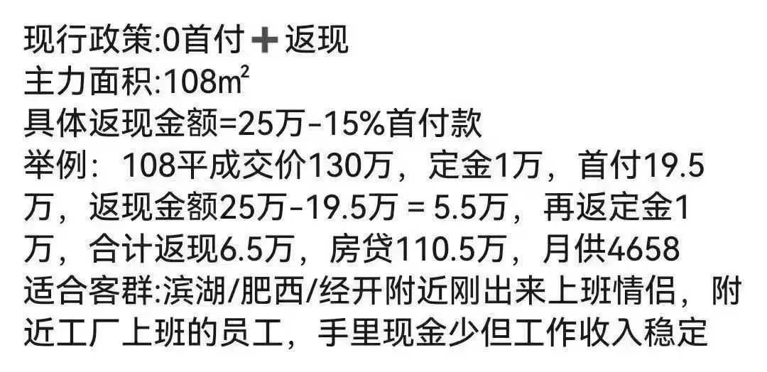 此外,笔者刷朋友圈时发现,不少中介正在推一套主力面积约108㎡的房子,0首付+返现6.5万。