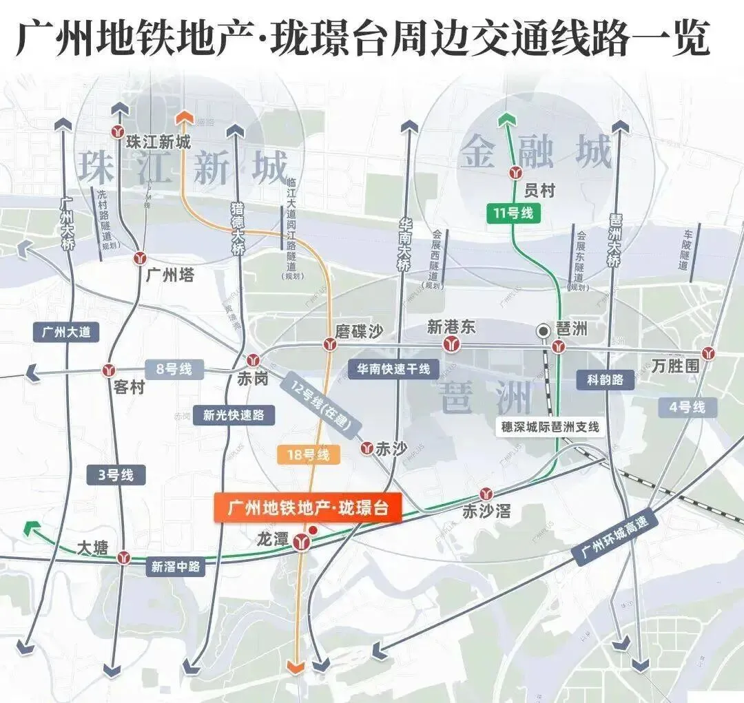 双地铁上盖,高速地铁18号线+广州首条大环线11号线龙潭站。