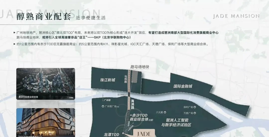 距离赤沙 TOD 旗舰商业中心仅约 600 米,周边 3 公里范围内还有珠影星光城、丽影广场、合生广场、万达广场 (广州海珠店) 等购物中心,可满足日常购物需求。
