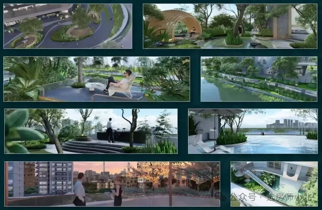 此外,珑璟台西侧紧邻天然河涌,并沿途打造了开放式街角公园,与社区园林无边界衔接,景观优美。