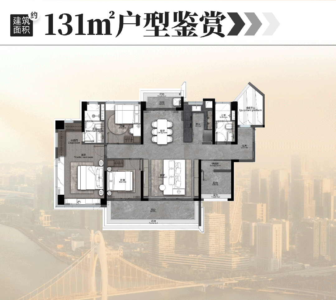 主套L型衣帽间、环幕大飘窗,躺床上便能欣赏窗外的“巨幕4K景观大片”。