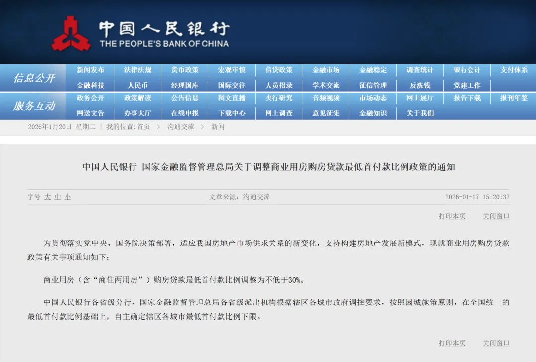 1月17日,央行与国家金融监管总局联合祭出“王炸”:商业用房(含“商住两用房”)购房贷款最低首付款比例,正式下调至30%!