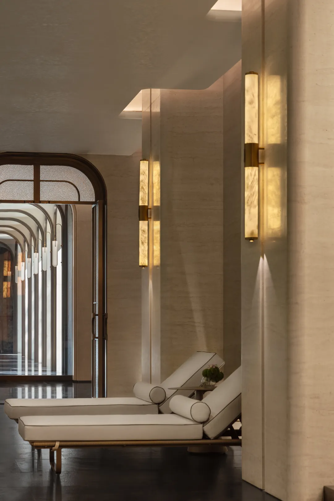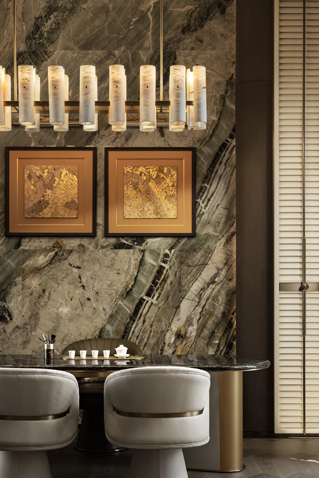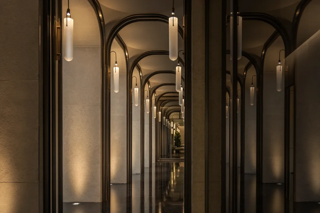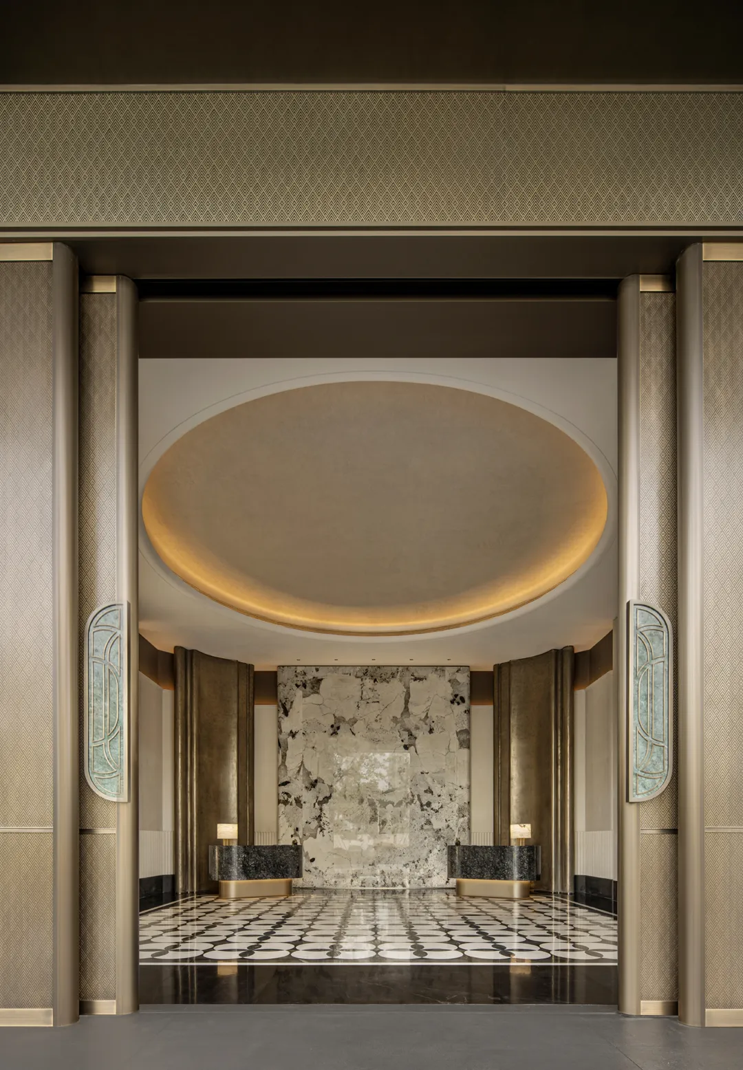 项目亮点:户型以 270°环幕江景为核心,全板楼布局实现户户无遮挡瞰江(如 199 平户型拥29.5米观江面宽),结合 3.55 米层高与独梯独户设计提升空间舒适度;创新“生机之环”地下空间通过四层通高森境谷庭、绿植瀑布将自然引入地库,形成艺术化归家动线;立面融合宋代《水图十二卷》长江意象,香槟色波浪铝板玻璃幕墙呼应江波纹理;双会所配置涵盖恒温泳池、私宴露台、室内高尔夫及赛事级篮球馆,延伸精英社交场景。