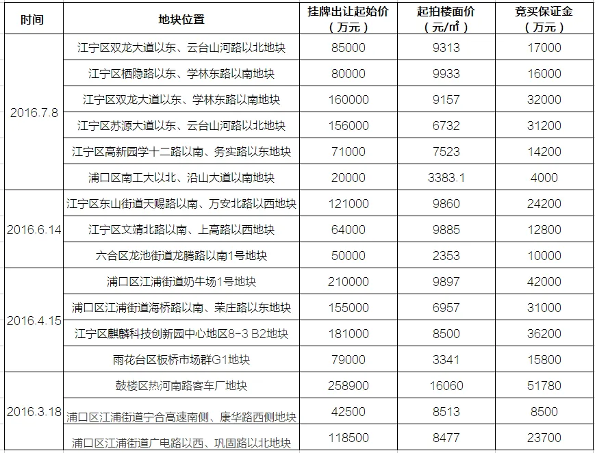 看看这张表,从三月到现在,拍地保证金就交了37个亿,7月8日一天的保证金就是11亿4000万。和郑州市场不一样的是,南京市场土地K2颗粒无收。