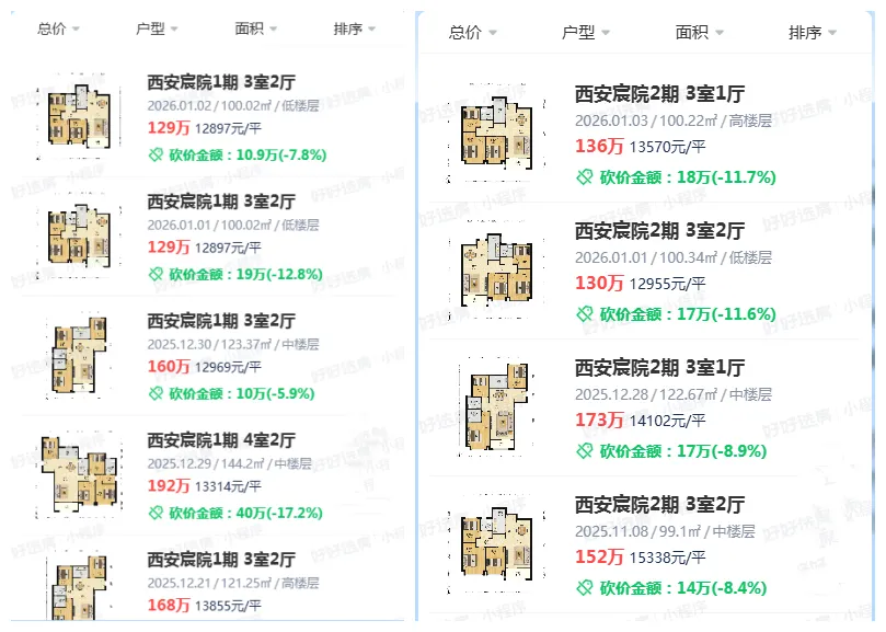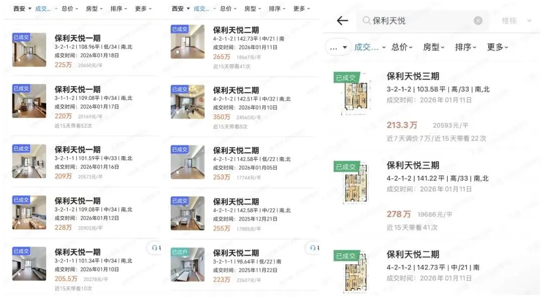 比如保利天悦,成交量比较大的小三室101㎡,总价200万出头,140㎡四室约265万,均价1.8万-2万/㎡的价格,价格回归理性;西安宸院1.2万-1.4万/㎡的成交价,也是很多买房人“下手”的原因。