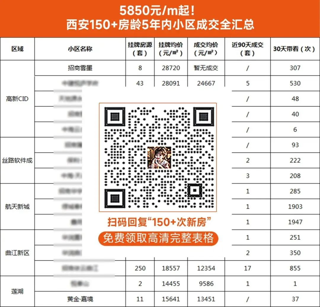 PS:我们统计了西安150+次新房及挂牌量走势,成交价5850元/㎡起,扫码领取最全汇总。