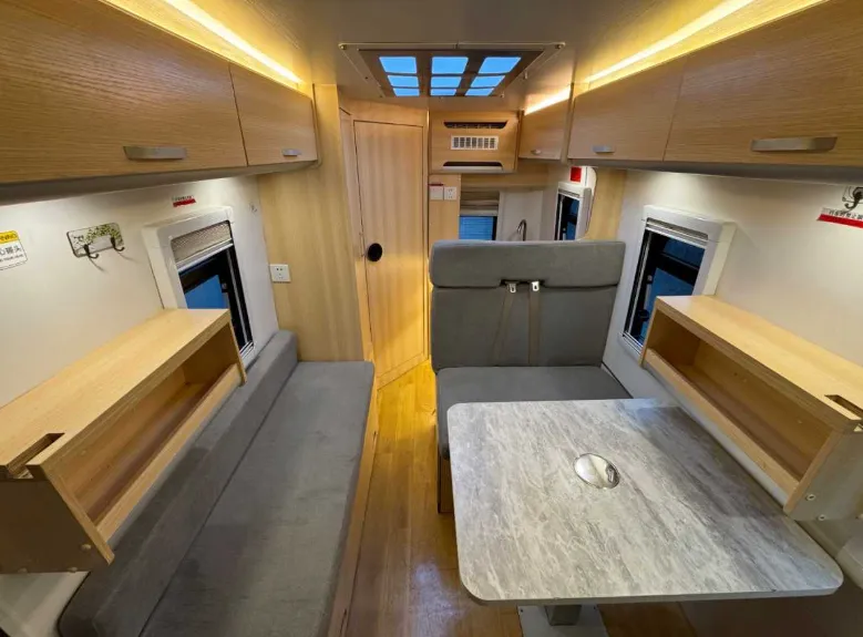 【上装配件】直流空调,柴暖,直流冰箱。电磁炉,翻盖式洗漱池,独立淋浴花洒,电热水器,便携式马桶,双向换气扇,户外遮阳篷等。