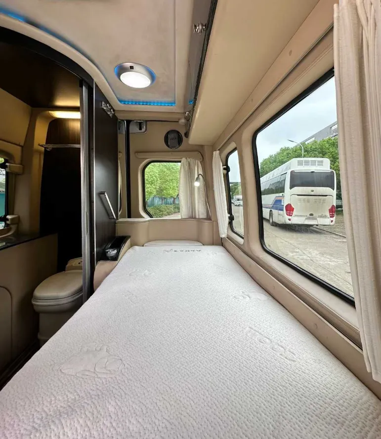 【上装配件】后行车空调,前后仓电动升降隔断,阿尔派音响系统,五孔插座,燃油暖风,两个可旋转电动按摩按摩。车载冰箱,电水壶,微波炉。卫生间有赛特福德抽拉马桶,面盆,毛巾架。电动中门,电动踏步,充电口,加水口,底置备胎。