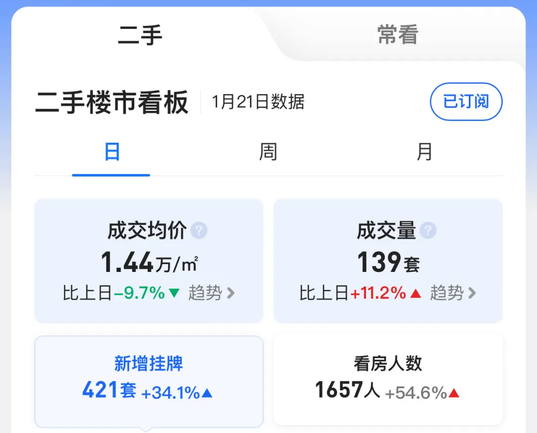 本月截至1月21日(周三),苏州六区住宅累计网签【3920套】,其中二手房累计网签【3144套】、新房累计网签【776套】。