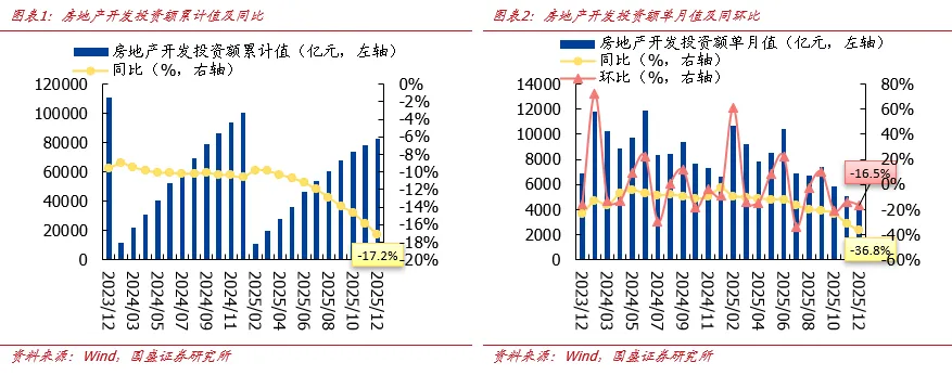 一、2025年房地产开发投资额累计同比-17.2%,相关指标加速下跌