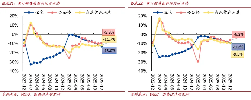 分析师 金晶 执业证书编号:S0680522030001分析师 夏陶 执业证书编号:S0680524070006具体分析详见国盛证券研究所2026年1月22日发布的《2025年统计局数据点评:全年新房市场维持低迷销售额同比-12.6%,开发投资相关指标加速下跌》报告特别声明:《证券期货投资者适当性管理办法》于2017年7月1日起正式实施。通过微信形式制作的本资料仅面向国盛证券客户中的专业投资者。请勿对本资料进行任何形式的转发。若您非国盛证券客户中的专业投资者,为保证服务质量、控制投资风险,请取消关注,请勿订阅、接受或使用本资料中的任何信息。因本订阅号难以设置访问权限,若给您造成不便,烦请谅解!感谢您给予的理解和配合。重要声明:本订阅号是国盛证券地产组团队设立的。本订阅号不是国盛地产组团队研究报告的发布平台。本订阅号所载的信息仅面向专业投资机构,仅供在新媒体背景下研究观点的及时交流。本订阅号所载的信息均摘编自国盛证券研究所已经发布的研究报告或者系对已发布报告的后续解读,若因对报告的摘编而产生歧义,应以报告发布当日的完整内容为准。本资料仅代表报告发布当日的判断,相关的分析意见及推测可在不发出通知的情形下做出更改,读者参考时还须及时跟踪后续最新的研究进展。本资料不构成对具体证券在具体价位、具体时点、具体市场表现的判断或投资建议,不能够等同于指导具体投资的操作性意见,普通的个人投资者若使用本资料,有可能会因缺乏解读服务而对报告中的关键假设、评级、目标价等内容产生理解上的歧义,进而造成投资损失。因此个人投资者还须寻求专业投资顾问的指导。本资料仅供参考之用,接收人不应单纯依靠本资料的信息而取代自身的独立判断,应自主作出投资决策并自行承担投资风险。版权所有,未经许可禁止转载或传播。