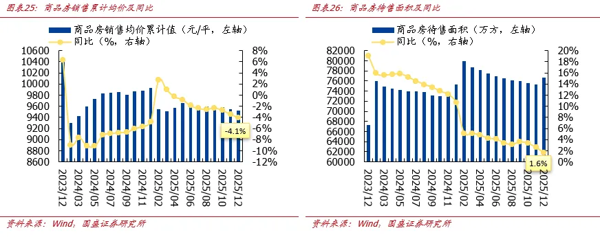 2025全年销售均价9527元/平,同比-4.1%;待售面积维持高位,年末面积为7.7亿方,同比+1.6%。