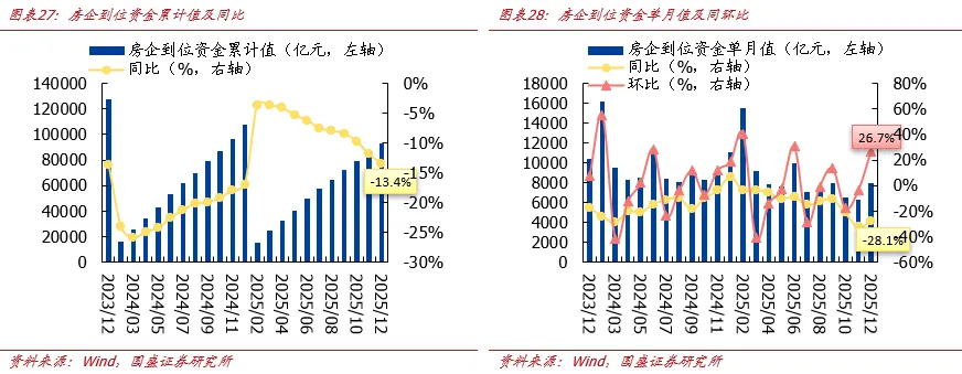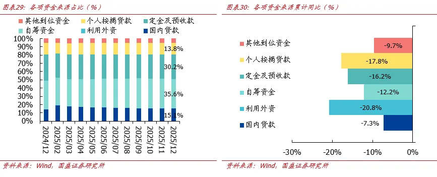 三、2025年房企到位资金累计同比-13.4%,年末资金面趋紧