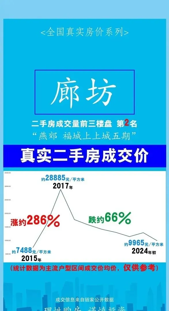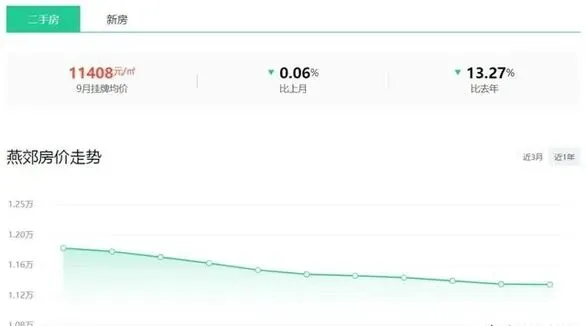 这样的分化不是个例。2026 年 1 月燕郊二手房挂牌均价 10080 元 /㎡,同比下跌 17.9%,但神威大街站周边的尚璟花园,因为是双地铁换乘枢纽,均价稳定在 1.6 万 /㎡左右,部分好房源甚至一房难求。反观远离地铁的老城区,福成五期的挂牌价普遍在 8000 元 /㎡上下,和 2025 年 4 月的成交均价基本持平,横盘态势明显。