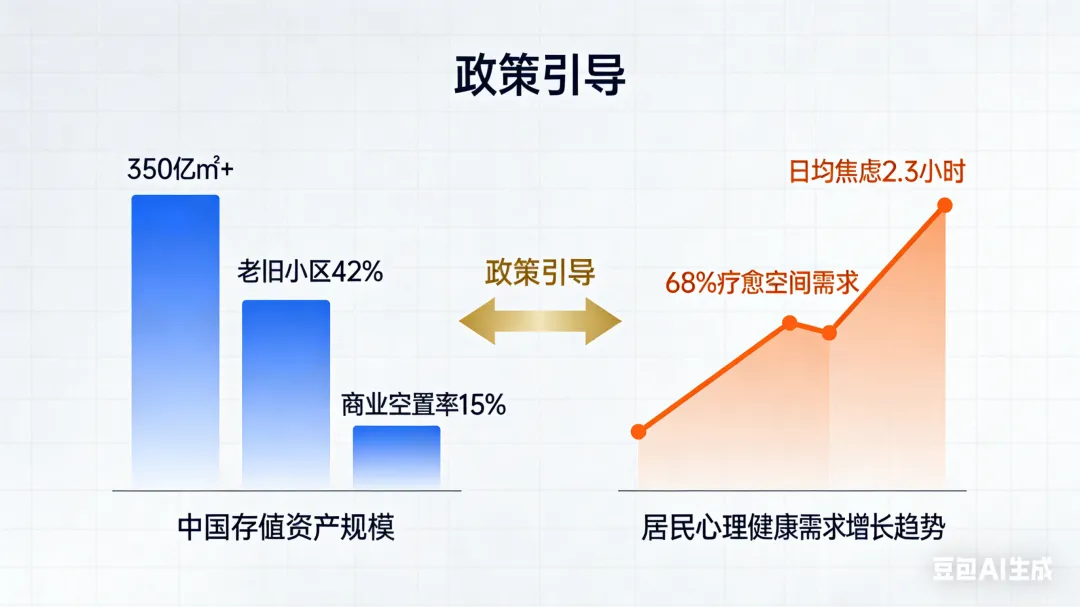 在快节奏生活下,中国城镇居民日均焦虑时长达 2.3 小时,68% 的受访者表示「需要专门的疗愈空间缓解压力」(数据来源:2025 年《国民心理健康蓝皮书》)。疗愈地产通过空间重构与服务升级,正成为存量资产盘活的「情绪价值引擎」。