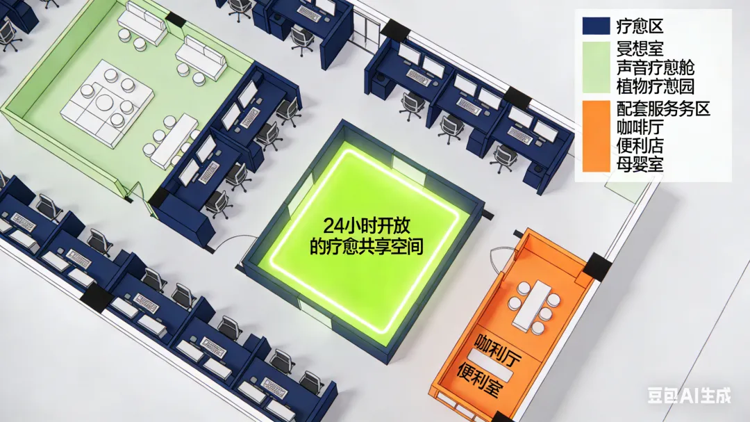 1. 技术赋能:VR 冥想舱、生物反馈座椅等智能设备渗透率将超 60%,空间设计融入「光疗节律系统」(参考:日本「疗愈建筑标准」)。
