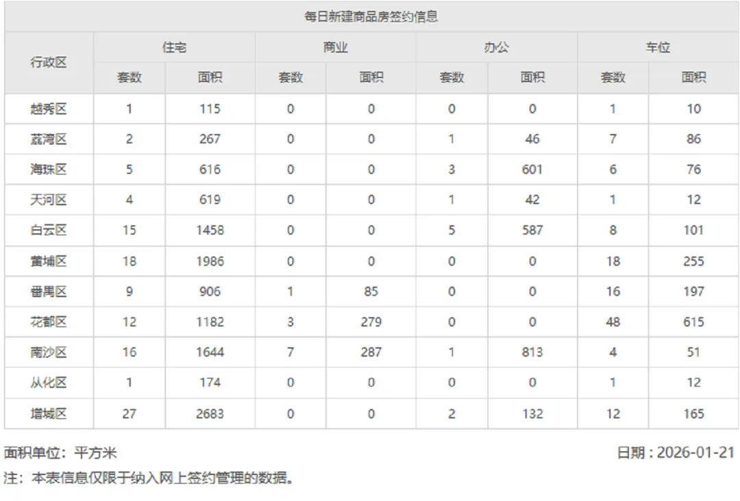 2026年1月21日新房网签数据