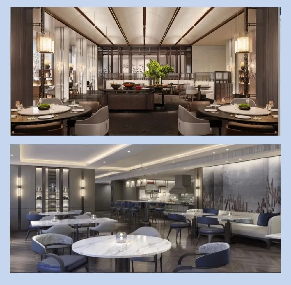 餐饮方面,酒店规划了四间风格各异的餐厅与酒吧,包括全日制餐厅、高端中餐厅、FLAIR特色餐厅酒吧以及大堂酒廊,为宾客提供多元化的美食体验。