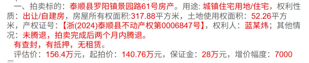 惊爆!泰顺一千万级联排别墅,二拍“腰斩”起拍!