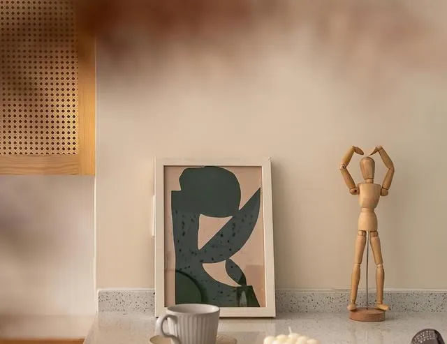 客厅本来和阳台之间有道墙,采光一般。小姐姐直接咔嚓一声拆了,整个空间瞬间变大、变亮,阳光哗啦啦地洒进来。墙上背景墙是她自己选的奶油色艺术涂料,配上几条极简线条,温柔又有设计感,坐沙发上喝杯咖啡都觉得幸福感爆棚!