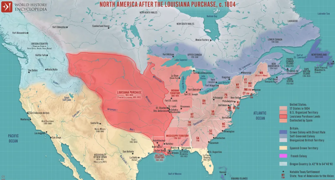 最经典的案例莫过于1803年的路易斯安那购地案(Louisiana Purchase)。托马斯·杰斐逊仅仅花了1500万美元,就从拿破仑手里买下了214万平方公里的土地,每英亩不到3美分。这笔交易让美国的领土瞬间翻倍。