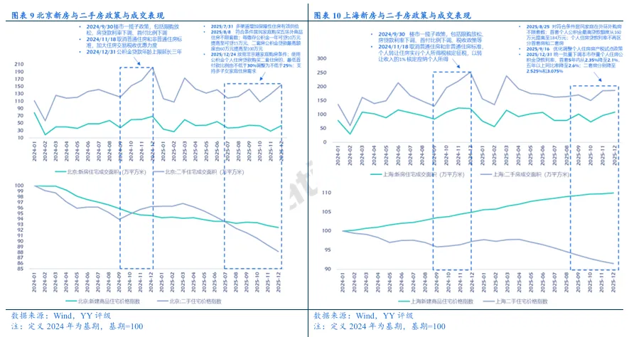 地方持续落实相关政策,围绕现房销售、专项债收储、购房补贴、公积金贷款放松、放松限购、保障性住房等多方面持续推进具体措施。2025年12月24日,北京发布《关于进一步优化调整本市房地产相关政策的通知》,明确:1)进一步优化调整住房限购政策:一是放宽非京籍家庭购房条件,将非京籍家庭购买五环内与五环外商品住房的社保或个税缴纳年限缩短1年;二是支持多子女家庭住房需求。二孩及以上的多子女家庭,可在五环内多购买一套商品住房。2)进一步优化个人住房信贷政策,在利率定价机制安排方面不再区分首套住房和二套住房,合理确定每笔商业性个人住房贷款的具体利率水平。3)加大公积金支持住房消费力度,对借款申请人(含共同申请人)使用公积金个人住房贷款购买二套住房的,最低首付款比例由不低于30%调整为不低于25%。
