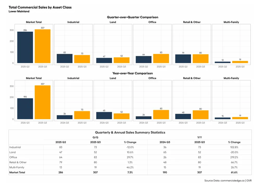 最近,大温哥华 REALTORS®(Greater Vancouver Realtors, GVR)发布了2025年第三季度 Commercial Edge 商业地产市场报告,数据显示区域商业地产逐步回暖,但整体市场仍呈现结构分化。让我们一起看懂关键趋势