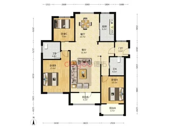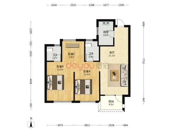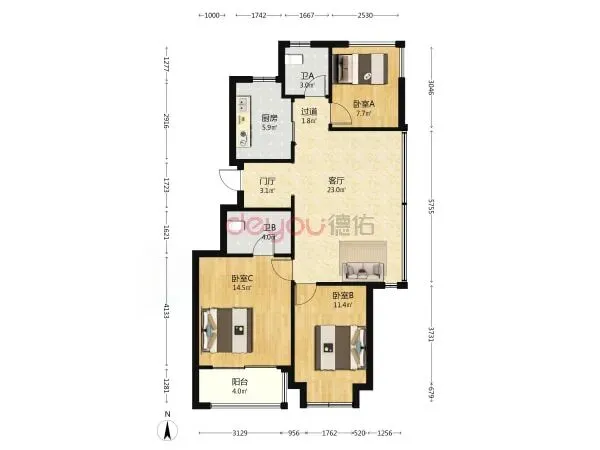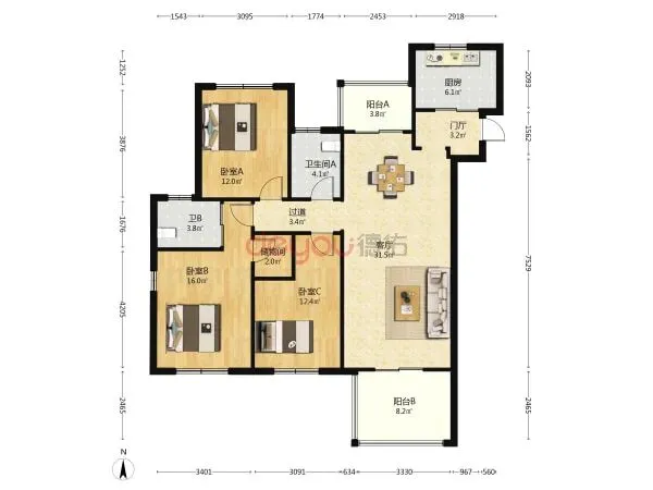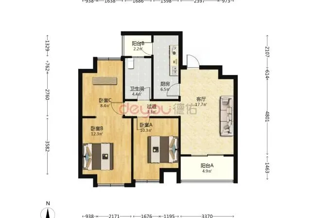 众安理想湾,105㎡,挂牌价:138万,南北通透中间楼层,精装修
