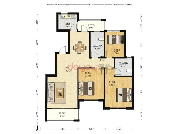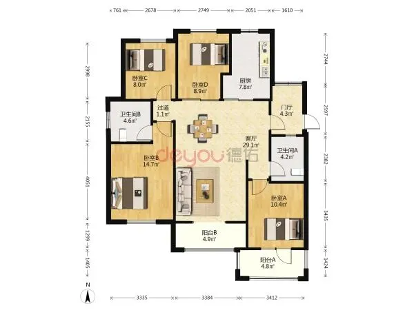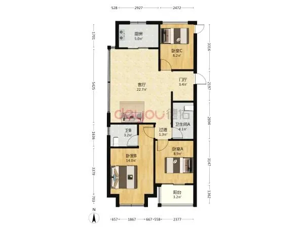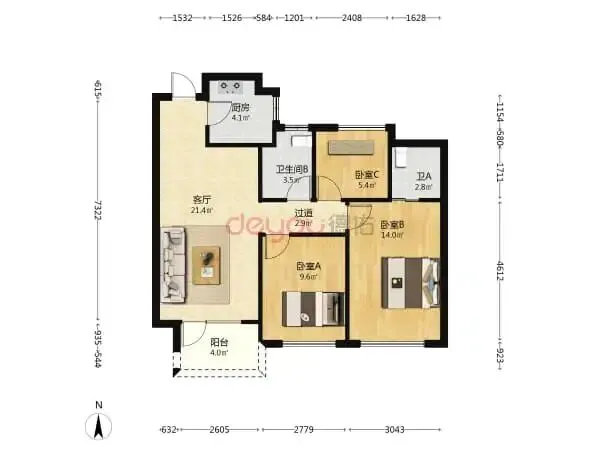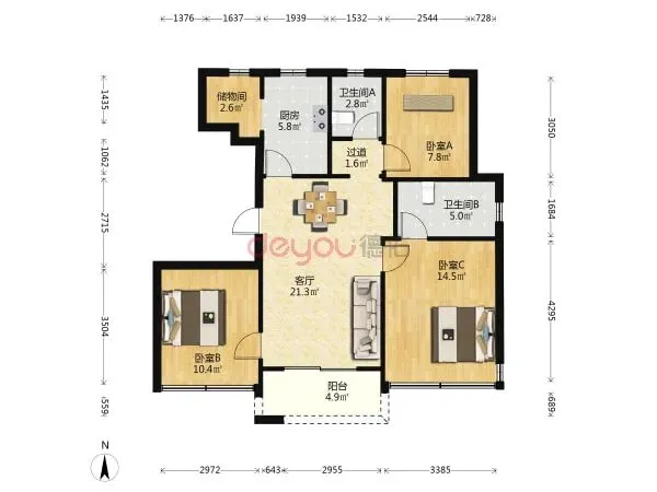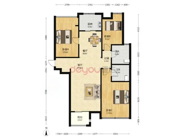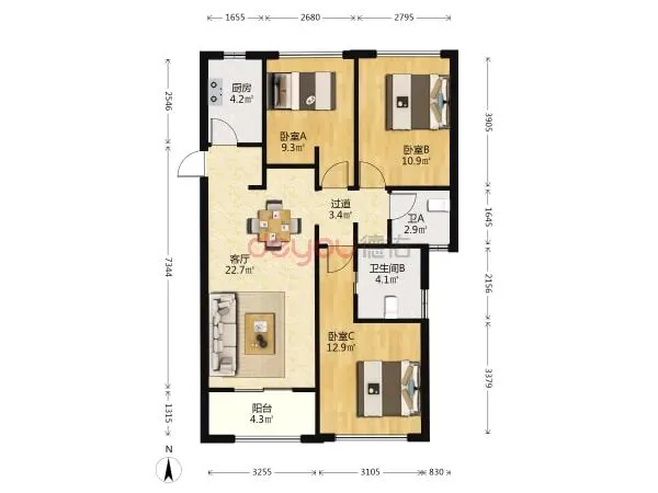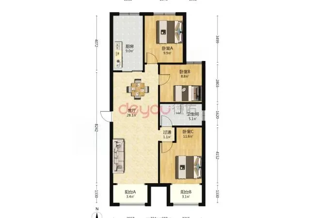 金都夏宫,90㎡,挂牌价:105万,中间楼层
