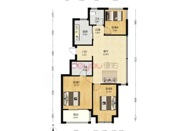 御清城,89㎡,挂牌价:190万,两梯两户洋房