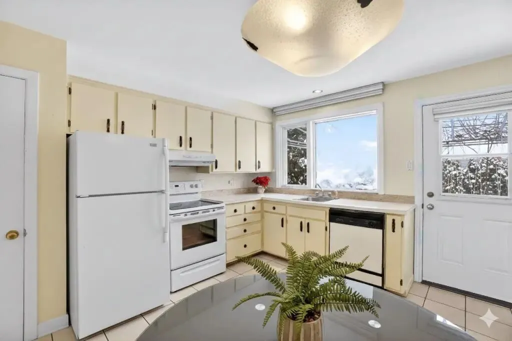 阳光充沛的厨房拥有大面积窗户,自然采光极佳,整体氛围温暖宜人。