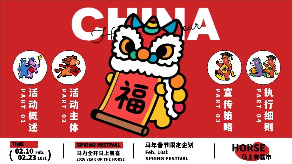 总之,这是一份主题鲜明、结构清晰、环节充实的春节活动策划方案,巧妙融合传统年俗与当代潮流,并配备了完整的传播规划和落地执行指南,具有很高的参考与借鉴价值。