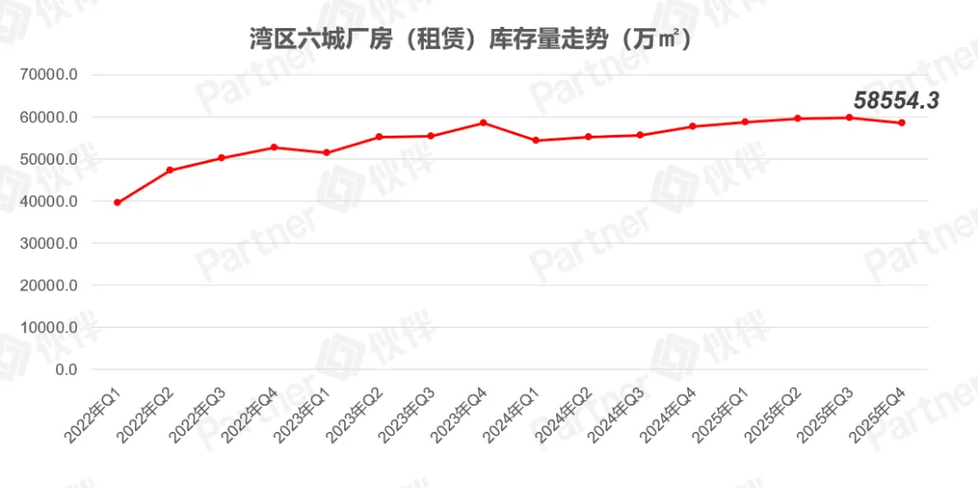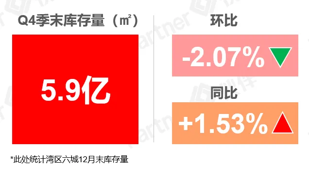 湾区:2025年第4季度库存量为5.9亿㎡,环比下跌2.07%,同比上涨1.53%。