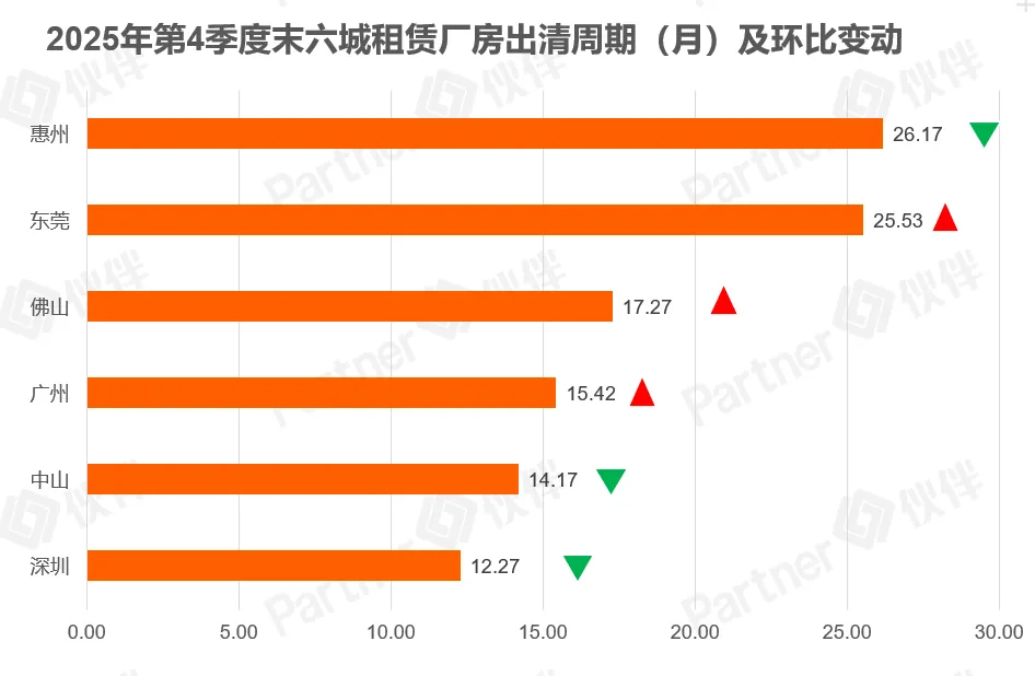 东莞、佛山、广州出清周期环比上涨,惠州、中山、深圳出清周期环比下降。
