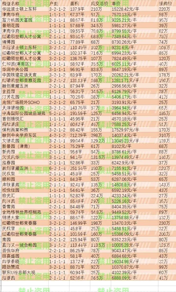 >1.12-1.15日,天津二手房部分区域成交播报!持续更新中!