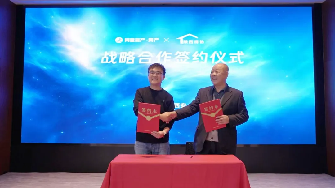 在与会嘉宾的见证下,井西超(井溪)与张炜作为代表完成战略签约,为未来阿里资产房产在陕西地区的深入作业协作奠定坚实基础。