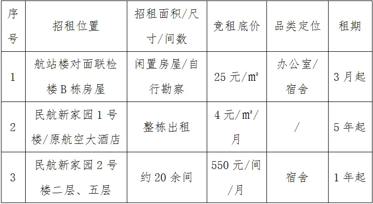 现拟将机场闲置房产进行对外公开招租,内容如下: