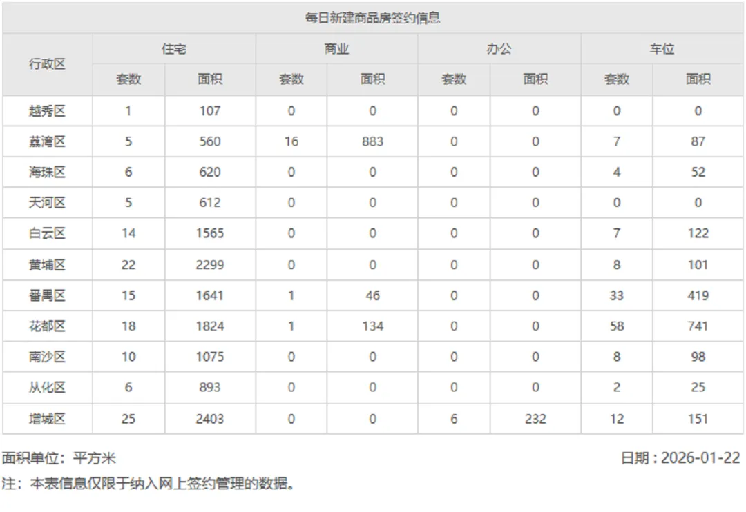 2026年1月22日新房网签数据