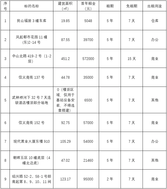 项目名称:杭州拱墅国投资产经营有限公司所持9处房产分零招租