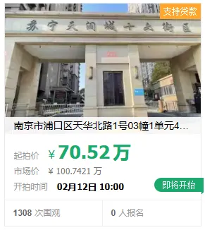【房产拍卖】 南京市浦口区天华北路1号03幢1单元401室不动产,70.52万元起拍