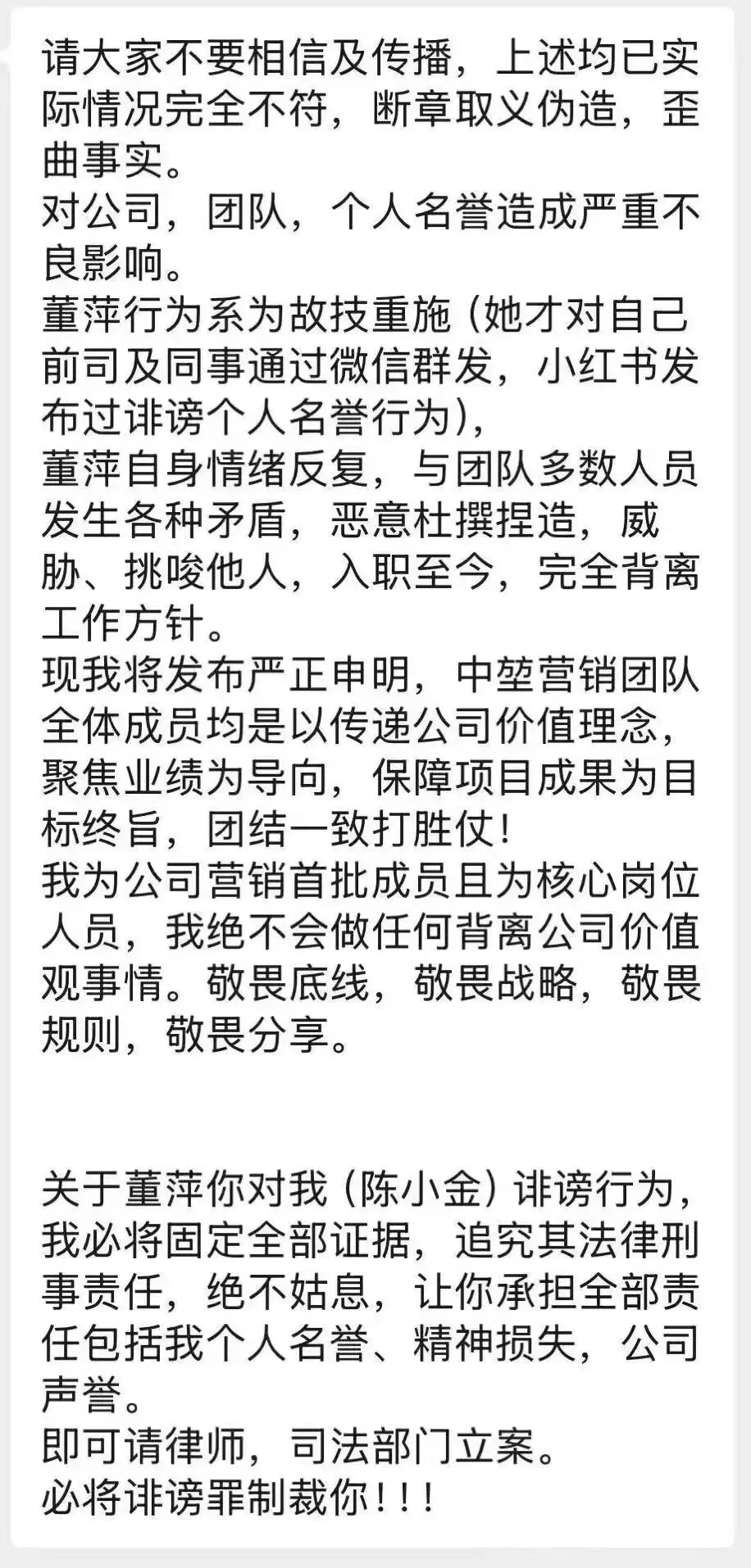 日前,中堃地产员工董萍发布的《关于陈小金职场霸凌行为的陈述》刷屏了南京地产人的朋友圈。