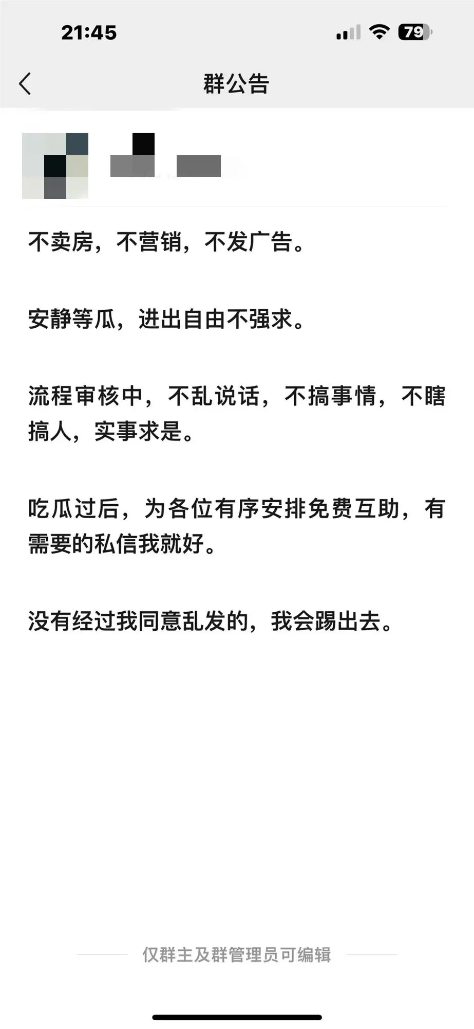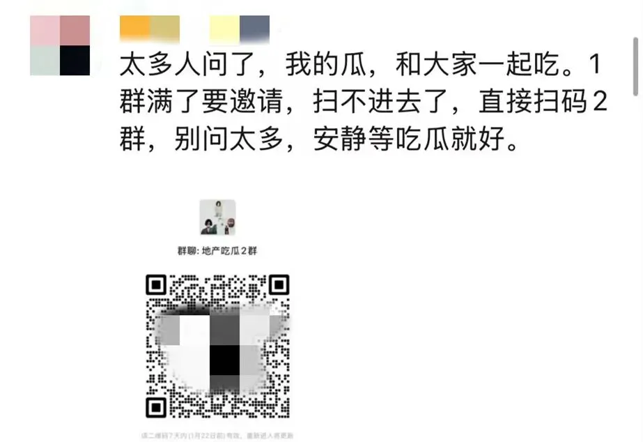 “请大家不要相信及传播,上述均已实际情况完全不符,断章取义伪造,歪曲事实。董萍行为系为故技重施(她才对自己前司及同事通过微信群发,小红书发布过诽谤个人名誉行为)。董萍自身情绪反复,与团队多数人员发生各种矛盾,恶意杜撰捏造,威胁、挑唆他人,入职至今,完全背离工作方针。现我将发布严正申明,中堃营销团队全体成员均是以传递公司价值理念,聚焦业绩为导向,保障项目成果为目标终旨,团结一致打胜仗!我为公司营销首批成员且为核心岗位人员,我绝不会做任何背离公司价值观事情。敬畏底线,敬畏战略,敬畏规则,敬畏分享。”1月15日,董萍发布朋友圈:“太多人问了,我的瓜,和大家一起吃。群满了要邀请,扫不进去了,直接扫码2群,别问太多,安静等吃瓜就好。”看客吃瓜热情高涨,很快,几个吃瓜群就突破了2000人。进群后,董萍发布群公告:“不卖房,不营销,不发广告。安静等瓜,进出自由不强求。吃瓜过后,为各位有序安排免费互助,有需要的私信我就好。没有经过我同意乱发的,我会踢出去。”不过,可以确定的是,在房地产行业,“职场霸凌”情况很普遍。以房企为例,虽然各个岗位分工明确,各司其职,特别是在营销口线上,上下级“等级”分明,普通销售人员对销售经理是绝对的服从,销售总监对销售经理又是绝对的权威。尤其是近年来,“职场霸凌”案件更是逐渐增多,背后有深层次的现实原因。