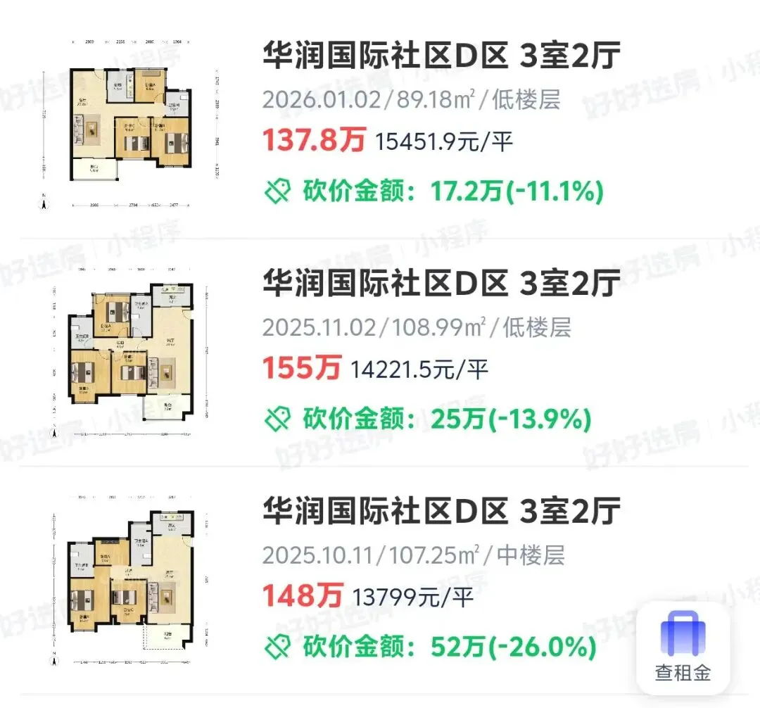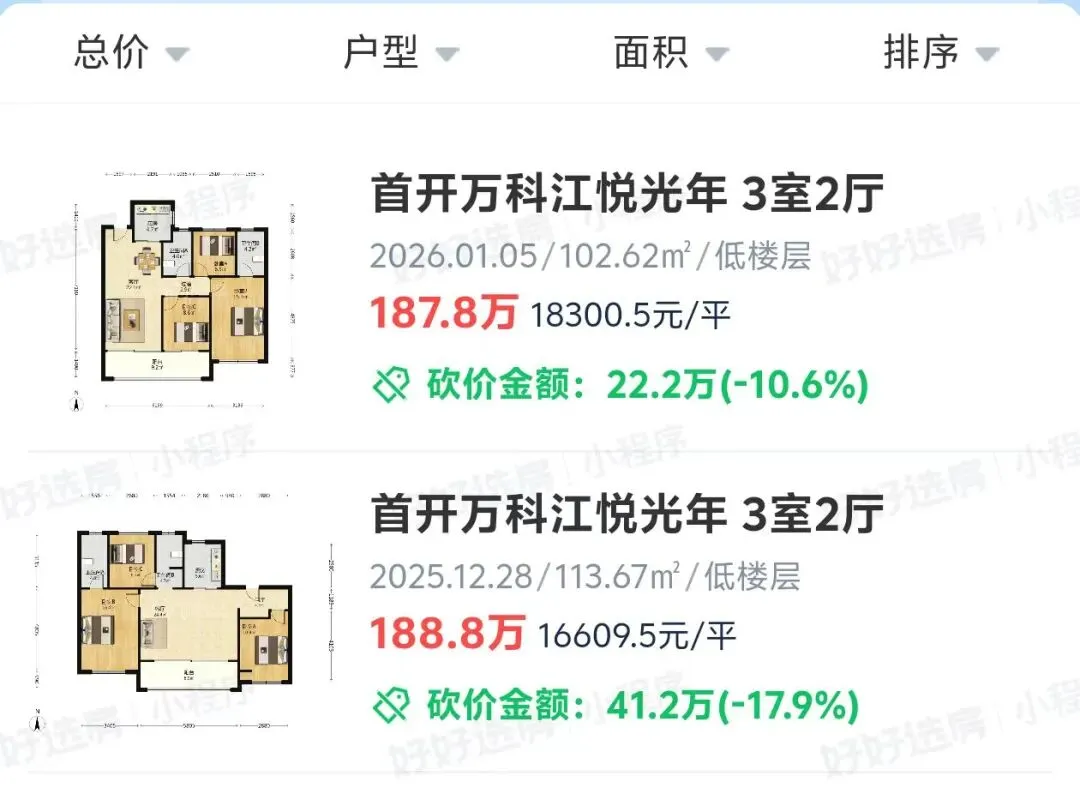 他们共同指出一个现象,现在卖方市场终于逆转,出现“逆转”了!2026年南京二手房是涨价还是跌价,我们进群开始聊!安家南京找王哥博主爆料称:江北业主开始出现了毁约现象据他描述:长江时代的一个业主为例,其当初以 155 万的价格准备卖房,上个月谈好交易后,现在宁愿赔偿 5 万违约金和 2.4 的中介费,也要将房价提到 170 万,只为多卖 5 万块钱。这位博主认为这反映出当前业主的心态在发生变化。另一方面,还有一个博主表示,自己约好的买房人到现场和卖房人一到签约中心,卖房人就原地涨价15万:最后,这单生意显然未成,博主表示:市场才好了一个月,你能100%确认会一直好下去吗?同样的情况:业主认为行情回暖,年后自己房子再涨50万不在话下说实话,我们稍微翻了一下目前江北1月份的最新成交价格,和12月相比,确实成交价都有所提升:正荣润江城上个月成交价16469元/㎡,1月3日成交价19950元/㎡;江与城上个月成交价17374元/㎡,1月4日成交价18055元/㎡;雅居乐滨江国际三四期上个月成交价18499元/㎡,1月4日成交价20007元/㎡;首开万科江悦光年上个月成交价16609元/㎡,1月5日成交价18300元/㎡;天宸云筑上个月成交价14451元/㎡,1月5日成交价16645元/㎡;华润国际社区去年10月普遍成交价1.3万/㎡,最新成交价站稳了1.5万;笔者知道,这些价格上涨看上去和买入价比仍然是亏得,而且看上去涨幅微不足道,但是,这几个典型的机会再2025年阶段一直在跌跌不休的小区,在2026年第一月就集体实现了回正,对于卖方来说,这个信号和信心意义是完全不同的。事实上十几天前,某第三方平台就开始有人爆料,大量业主,开始思考房子撤回不卖了:南京这位房主,表示房价跌的自己家房子的租售比3%,就这样买家还要再他再降5万元,到手更少了,觉得意义不大,下架不卖了。还有位南京房主说道:“客户带了大刀来砍价的,我准备全网平台下架一段时间了……”还有个房主说她其实想换房,但因为买家砍太狠,只能下架转出租。说句实话,眼下的市场,迷惑性非常足,看涨看跌的双方群体,都可以给出对方100条理由再加上南京此前2025年全年确实跌的太狠,导致买房人事实上在2025年也不太敢真正的出手买房,而到了年底,观望了一整年的买房人,最终还是决定该买就买,这是事实上折射出,买房人内心对于南京各版块调整后的价格,已经可以接受甚至觉得物超所值了。现在就看年后,南京会不会持续出台更为宽松有力的政策,真正的夯实这波热销的行情了!最后做个调查,你觉得2026年,南京的房价走势是跌还是涨?2026年南京二手房是涨价还是跌价,我们进群开始聊!本文相关文字、图片均是对本项目所做的示意表现,仅供参考,部分文字与图片来源于网络,文字和图片之间无必然联系,仅供读者参考,本文如无意中侵犯了某方知识产权,告知即删。本文所呈现的直线距离数据均来源于腾讯地图。最终标准详见政府相关部门批准文件、图则,经政府批准的详细规则以销售现场公示为准