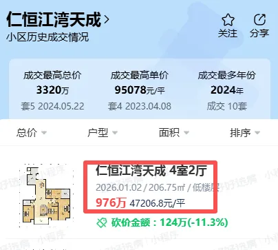 - 仁恒江湾天成:曾经单价近 10 万 /㎡,现在不到 5 万就能拿下;