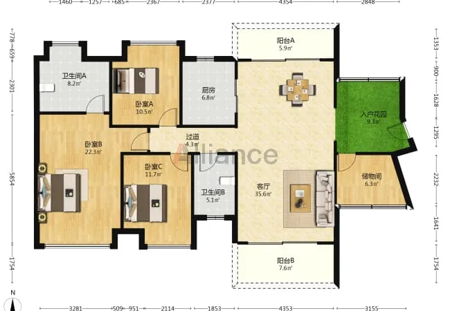 153平的3+1房