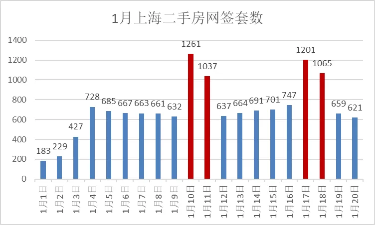 截至1月20日,上海已经网签了14159套二手房,日均707套左右。按照这个速度,今年1月份的二手房又能突破2万套了!