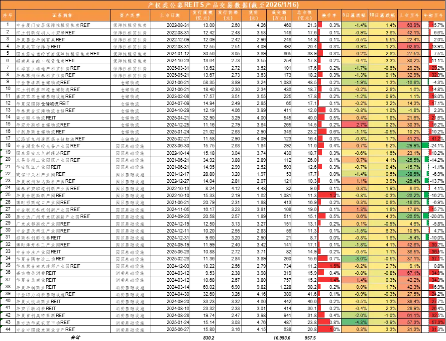 1月15日,国务院新闻办公室举行新闻发布会上,中国人民银行副行长表示2026年要继续实施适度宽松的货币政策,加大逆周期和跨周期调节力度,有效支持“十五五”开好局、起好步。根据当前经济金融形势需要,人民银行将先行推出两方面政策措施。一方面是下调各类结构性货币政策工具利率,包括下调各类结构性货币政策工具利率0.25个百分点。另一方面是完善结构性工具并加大支持力度,进一步助力经济结构转型优化。另外,将会同金融监管总局将商业用房购房贷款最低首付比例下调至30%,支持推动商办房地产市场去库存。鼎一观点:此次调整与降准降息空间释放、个税退税优惠等形成政策组合拳,传递出2026年房地产政策持续发力、系统维稳的信号。1月15日,“22万科MTN004”和“22万科MTN005”同时披露了2026年第一次持有人会议的议案概要。两笔债券余额分别为20亿元、37亿元,原兑付日分别为2025年12月15日、2025年12月28日。具体来看,“22万科MTN004”的会议议案共有四项:1)“议案一”提出本金兑付时间展期12个月,调整后兑付时间为2026年12月15日。在利息支付上,于2025年12月15日到期的应付利息6000万在宽限期内支付,也即2026年1月28日;宽限期间未偿付本金按3%计息,展期期间也以3%的利息计息,利随本清。同时“议案一”此番明确具体的增信措施;2)“议案二”的主题为延长本期中票的宽限期,从30个交易日延长至90个交易日,即宽限期届满日为2026年4月29日;3)“议案三”、“议案四”则提出了另外两种本息兑付方案,均提及要设置固定兑付安排等条件。据披露,本次会议将于2026年1月21日举行,议案表决截止日为2026年1月26日。鼎一观点:债券展期虽能缓解短期压力,但无法实质性解决本息到期偿付压力,万科仍需在销售改善、资产处置、融资渠道拓宽等方面取得实质性进展,才能从根本上缓解流动性压力。截至1月16日收盘,中证REITs(收盘)指数为790.22,上周下跌0.36%。最近一周,产权类REITs下跌0.11%,保租房、仓储、产业园和消费类REITs平均涨跌幅分别为-0.35%、-0.52%、0.36%和-0.11%。最近一周,公募REITs平均日换手率0.45%。