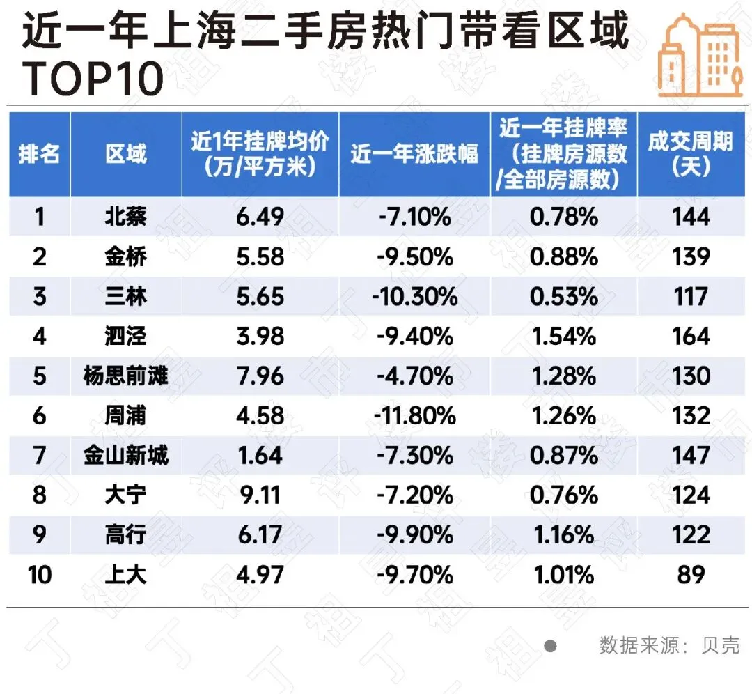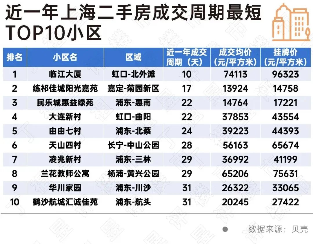 从近一年上海二手房成交周期最短TOP10小区来看,折价力度高及租金回报率高是其共同特征。这说明“以价换量”依然是当前上海市场二手房快速成交的不二法门。
