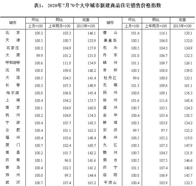 近日,国家统计局公布了“7月份70个大中城市商品住宅销售价格变动情况”。