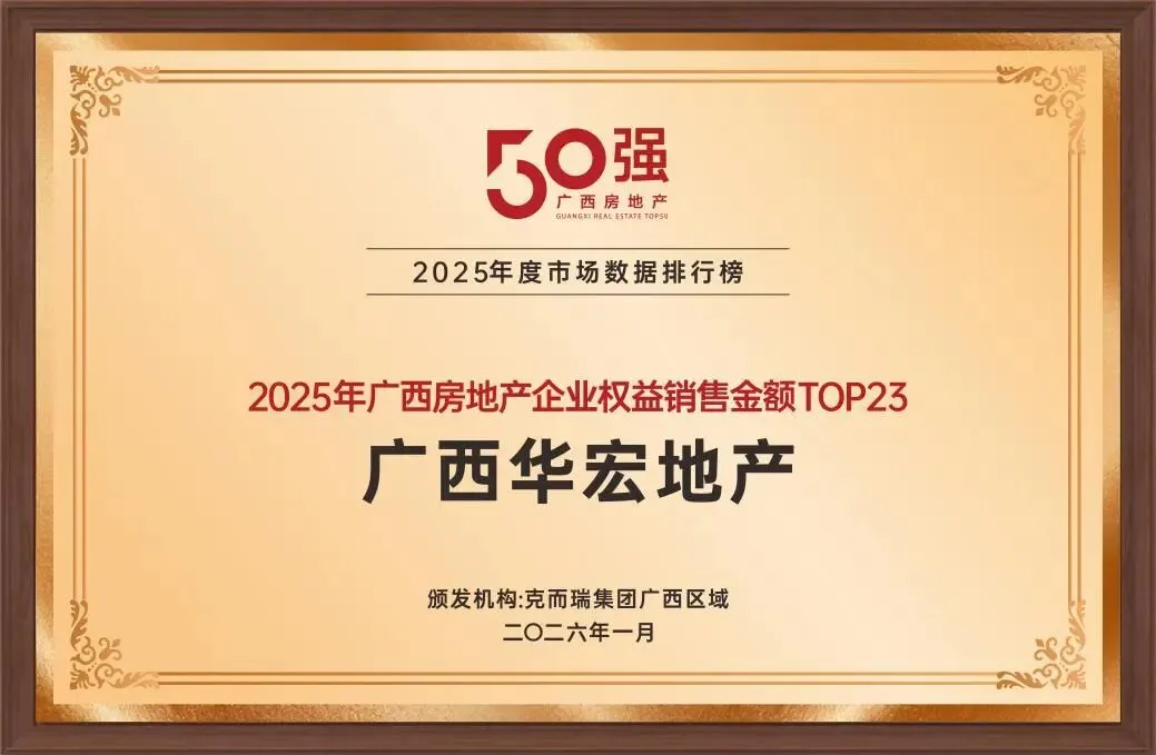 此次评选中,广西华宏地产荣获“2025年广西地产稳健发展企业大奖”。这一荣誉不仅是对企业综合实力的认可,更彰显其在复杂市场环境中,坚持高质量发展、稳健前行的战略定力。